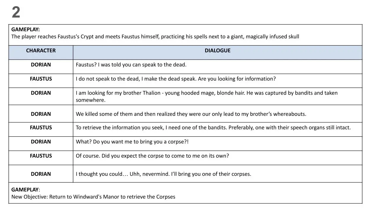 Solution – I designed a quest that gives Faustus more story and personality to hype this character for the player.
