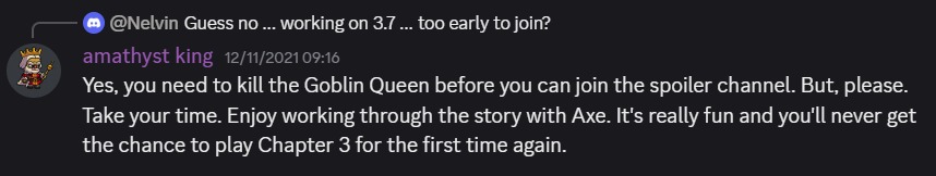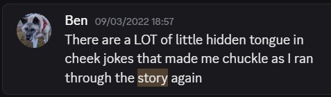 I wrote dialogue based on the conversation topic I had mentioned earlier in the quest flow. These were my considerations during the writing process: