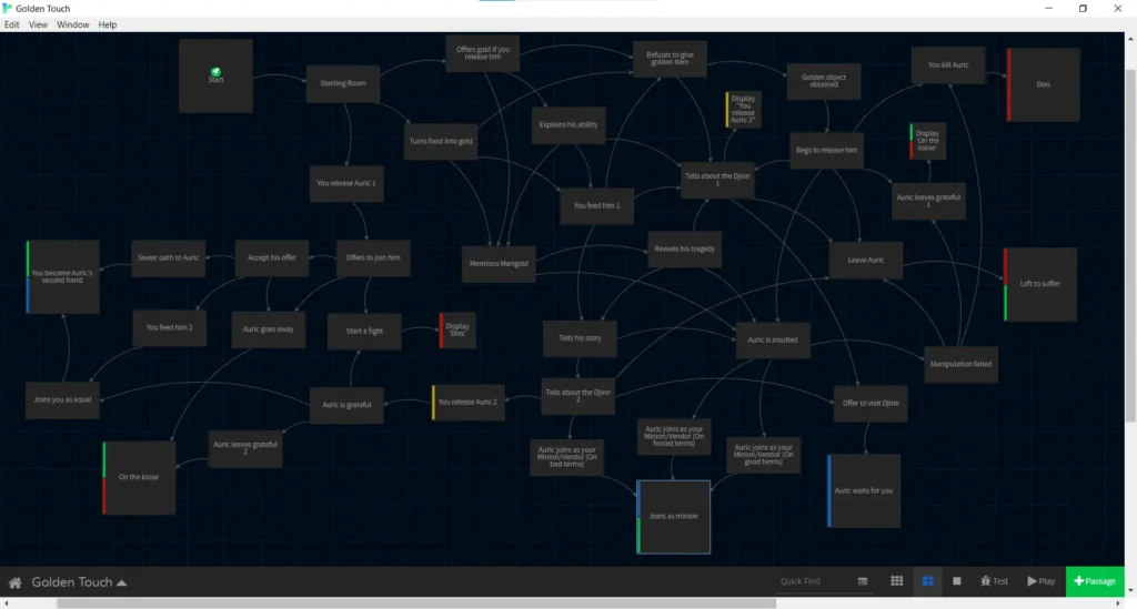 Golden Touch is a D&D-style branching dialogue, not affiliated with any project. It’s inspired by the legend of King Midas, who turned anything he touched into gold.
