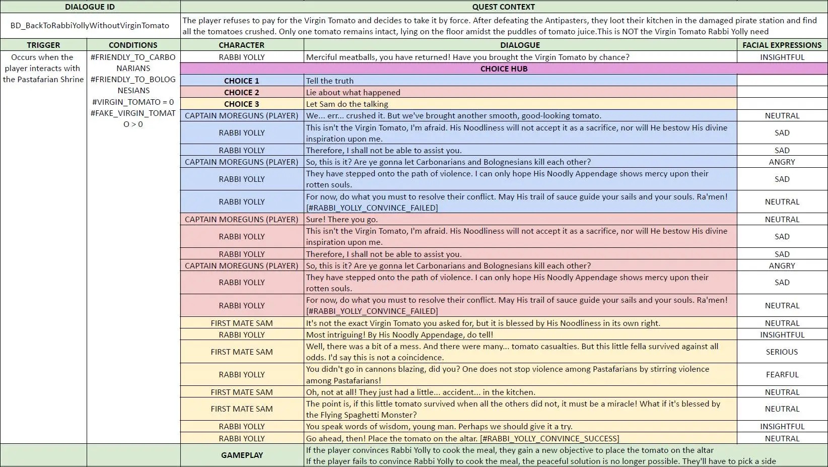 I wrote linear dialogue that covers interactions within the Divine Meal quest. Each dialogue gives information to the player and moves the story forward.
