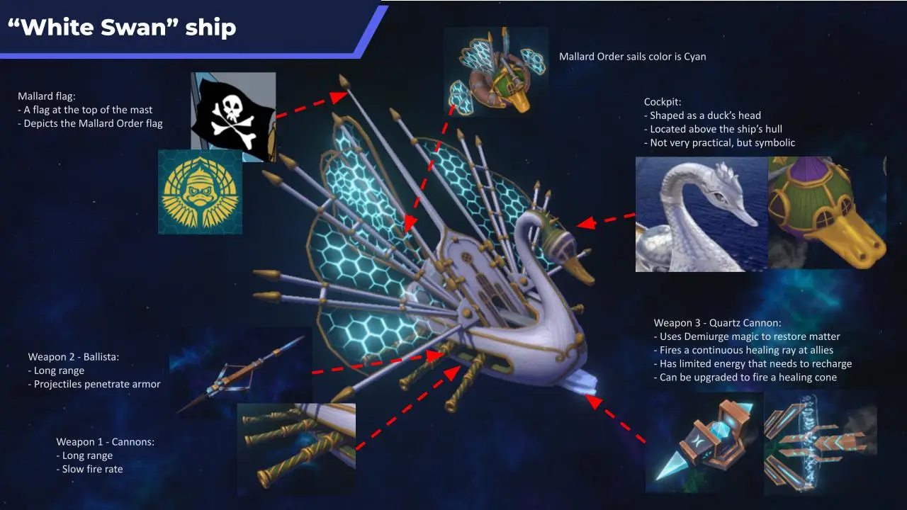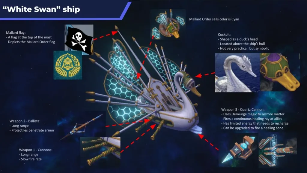 Cygnia has a combat ship, and its abilities utilize the game’s humor in its duck-themed attacks and abilities.