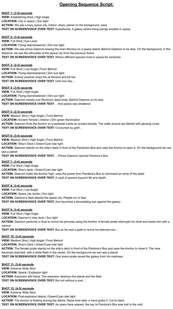 I designed a storyboard for the opening cutscene: