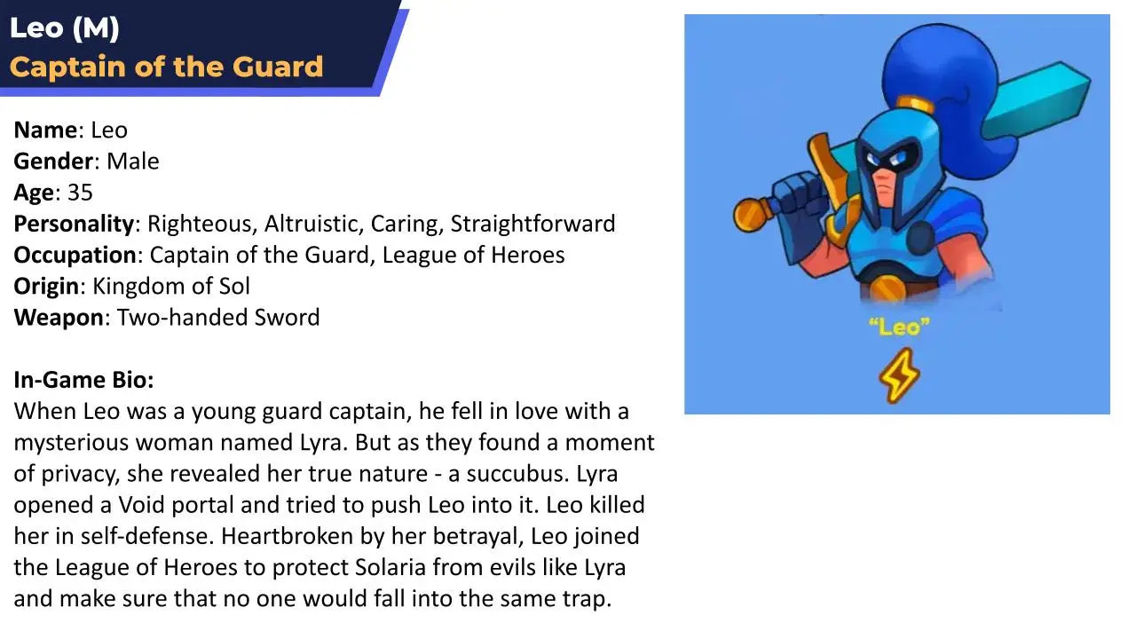 Leo is a high DPS melee warrior with lightning-infused abilities.