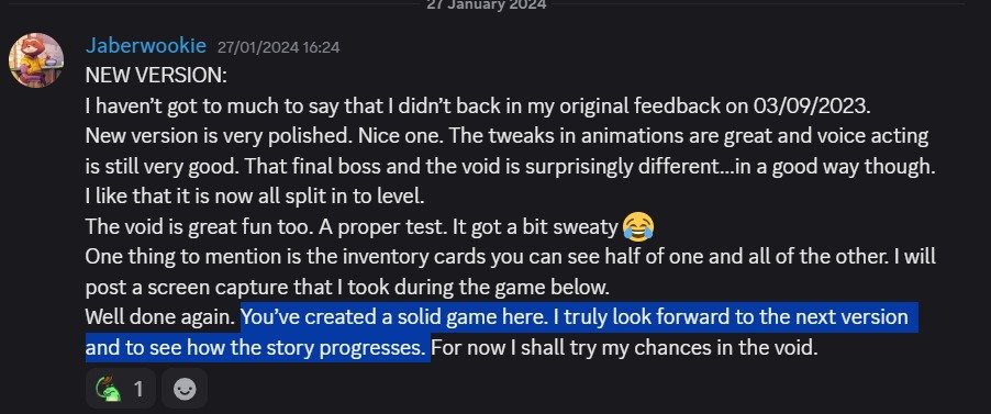 I’ve got quite extensive feedback, mainly to develop and expand upon lore elements related to the game’s features. They also asked to incorporate some of their early ideas and designs.