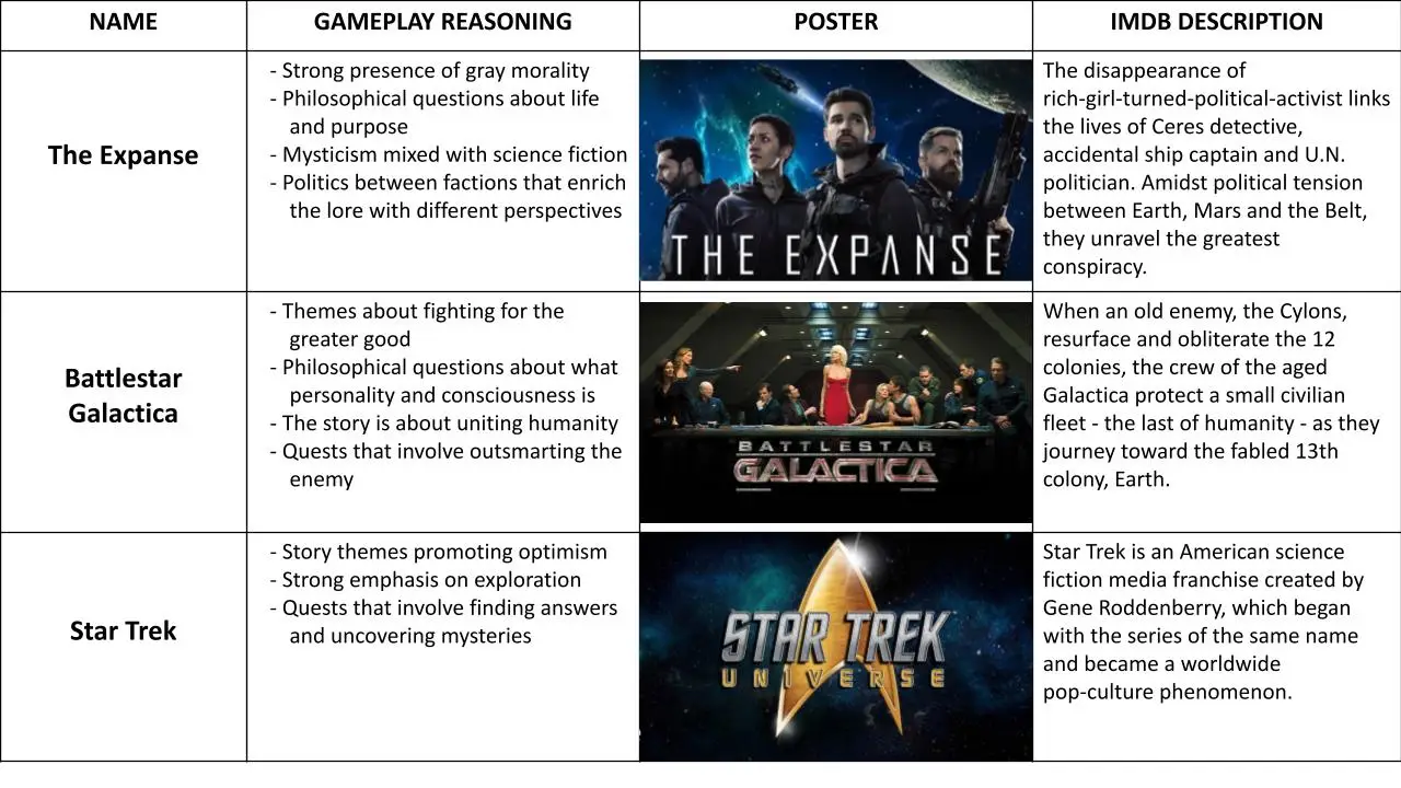 Researched popular video games, TV shows, and movies to: